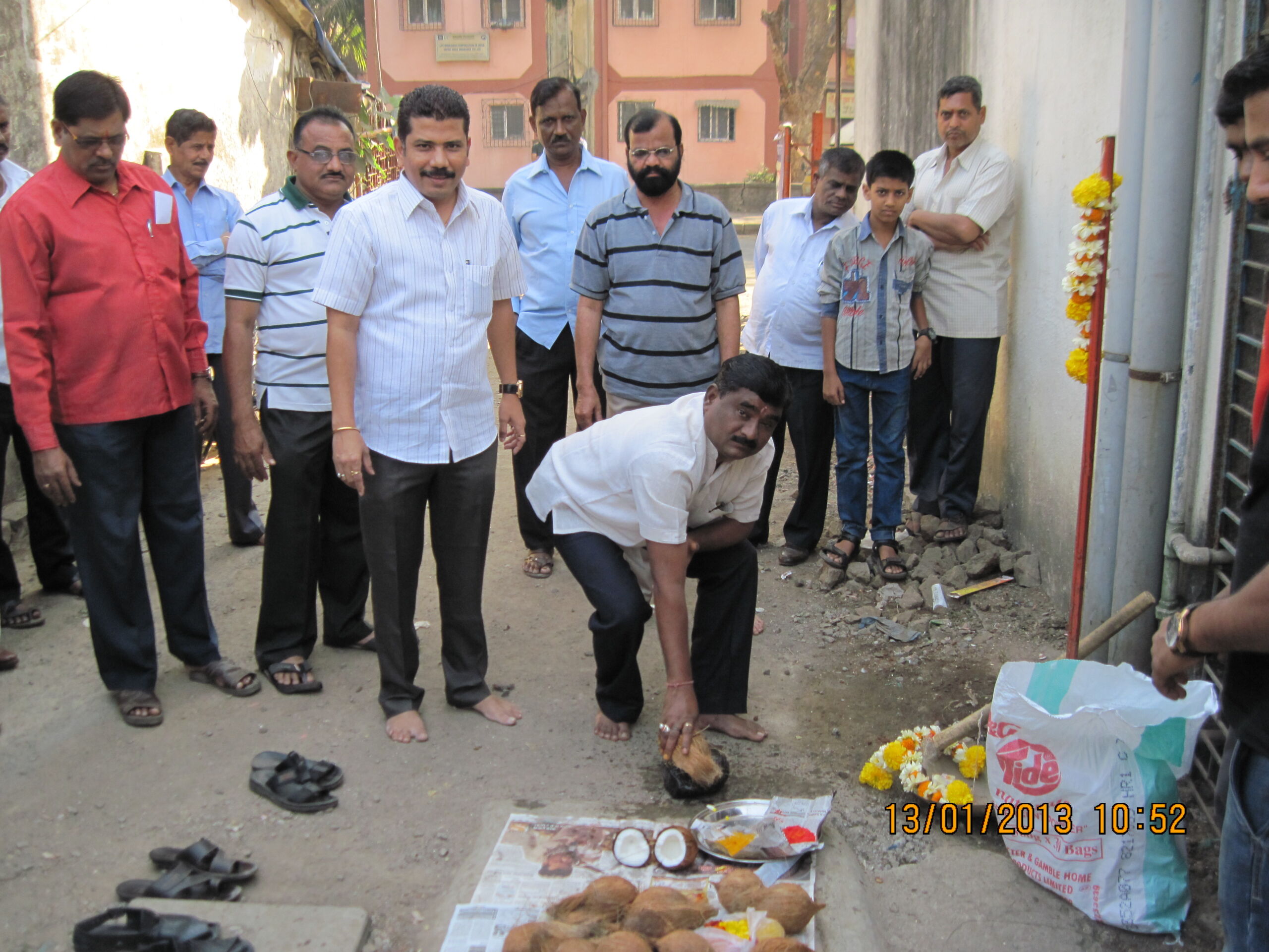 The new sewerage pipeline work in the A-Type area was officially initiated on 13 January 2013 with a traditional coconut-breaking Shubharambh ceremony.