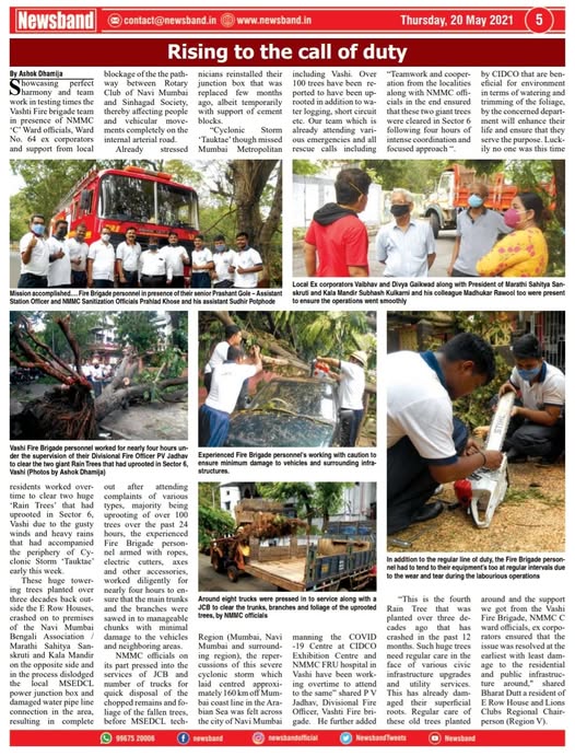 Can’t thank our #NMMC #Fire #Brigade personnel’s enough for their swift & efficient work during testing times. While we all were relieved that the storm has passed they continued to clear the damages done. Spending a few hours guiding them to places where tress had been uprooted made us realise that they are one of the hero’s that are not spoken about & many a times forgotten.