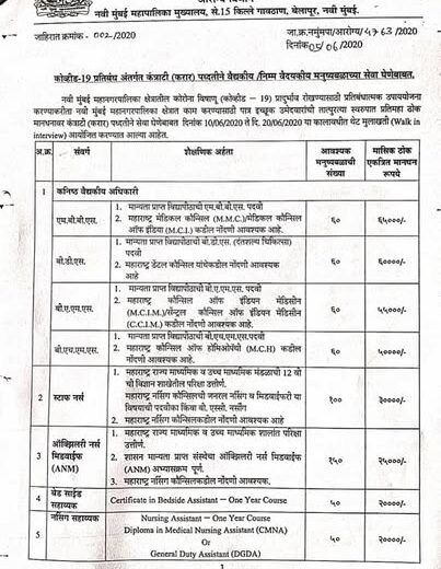 #Coronavirus #NMMC is recruiting 590 #Medical Staff i.e. Doctors (MBBS,BDS, BAMS, BHMS) Staff Nurse, Auxiliary Nurse (ANM), Nursing Assistance etc purely on Contract basis. Age…