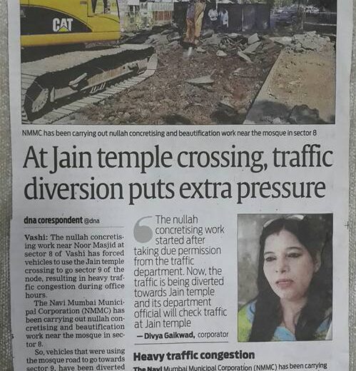 DNA – Navi Mumbai (8/1/2016) News paper. Road is closed near Noor Masjid for making Concrete Nullah connecting work which is in progress near Noor…