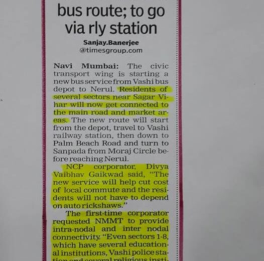 DIVYA VAIBHAV GAIKWAD – Privileged to be featured in Times of India in Committee formation in NMMC delaying development projects of Ward 64 Vashi. Read…