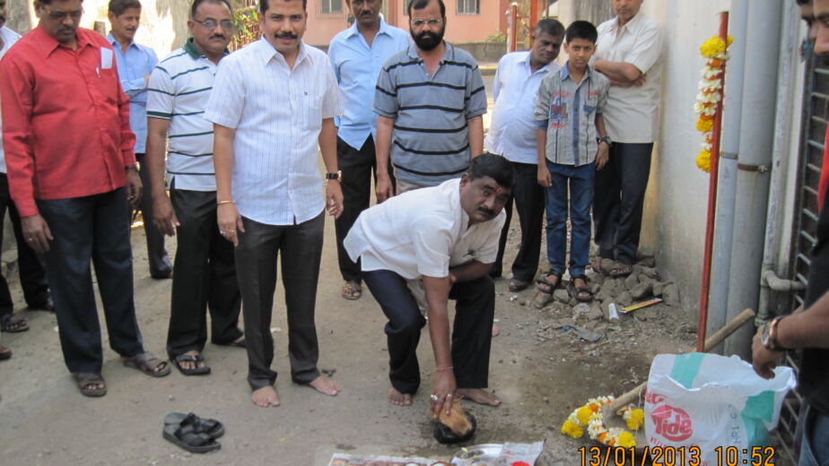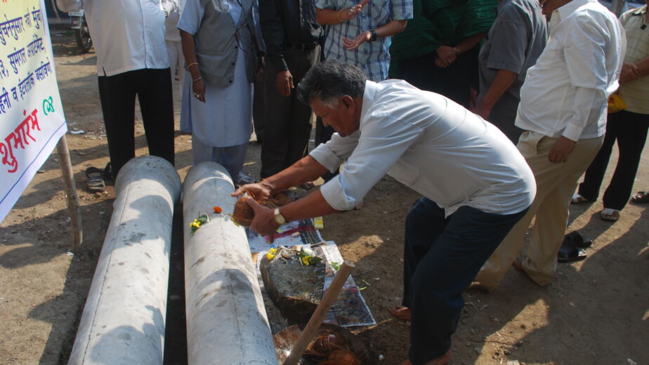 Sewerage improvement work at Sumangal began with a traditional coconut-breaking Shubharambh ceremony.