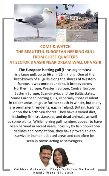 The Beautiful EUROPEAN HERRING GULL from close quarters @Sector 8, Vashi near Dream Wall & I ❤ NAVI MUMBAI Selfie point.