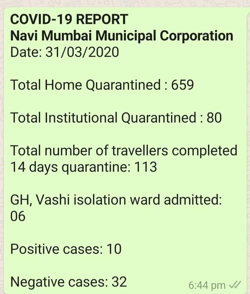 NMMC UPDATE AS ON 31.03.2020.