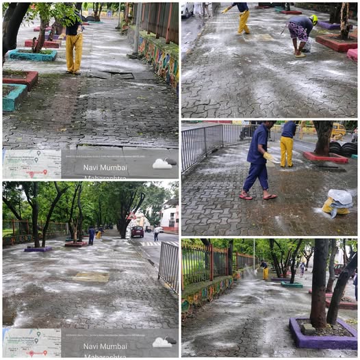 Due to monsoon footpaths in our Ward have become slippery. Requested #NMMC Cleaning department to put Bleaching powder on all footpaths of our area. The bleaching powder spraying has been started today and will be done in our area on all the slippery footpaths.