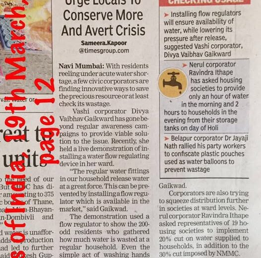#DIVYA GAIKWAD Chairman Environment Advisory Committee NMMC working for Pollution Free Navi Mumbai…Today’s TOI.