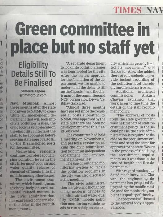 Divya Gaikwad is following up with NMMC commissioner for formation of #ENVIRONMENT Department in Navi Mumbai Municipal Corporation. Thanks #TOI for the news…