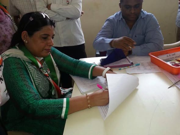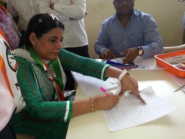 Divya vaibhav gaikwad filing the nomination for nmmc elections 2015