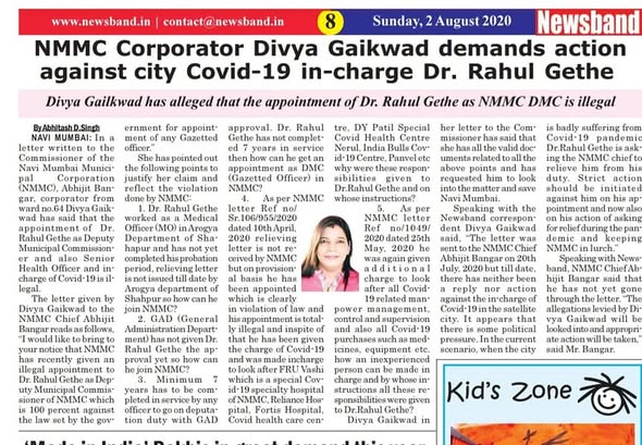 #divyavaibhavgaikwad demanded enquiry on appointment of Dr Rahul Gethe as Deputy Municipal Commissioner of #NMMC.