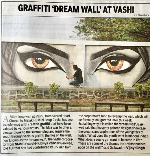 Civic Work UpdatesDream wall article in today s times of india newsByVaibhav GaikwadJanuary 17, 20180Comments Grateful to share this update with our community. #Dream Wall article in today’s Times of India news paper.