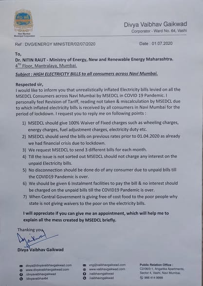 I had written email, letter to Hon Shri Nitin Raut sir – Minister of Energy. Also written email & letter to Chairman & MD of #MSEDCL, but till date have not received any reply to my email & letters by Energy ministry nor #MSEDCL. #MSEDCL have not yet reduced the #Electricity bills of citizens at least they should give us a reply/solution to our complaint. I have asked an appointment, which can help me to explain all the mess created by #MSEDCL briefly.