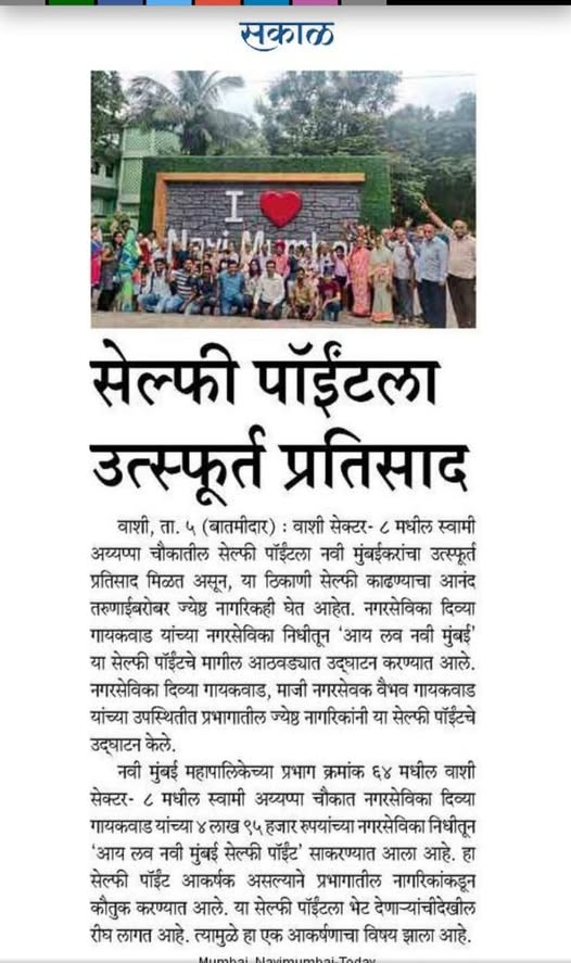 Civic Work UpdatesI Love Navi Mumbai selfie point@Sector 8, Vashi, NAVI MUMBAI.ByVaibhav GaikwadNovember 8, 20190Comments Grateful to share this update with our community. I Love Navi Mumbai selfie point@Sector 8, Vashi, NAVI MUMBAI.