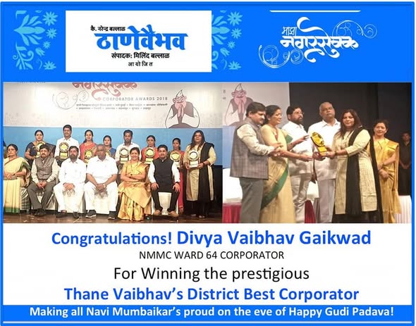 Many Thanks to #Thane Vaibhav News Paper for giving the Thane District Best Corporator Award 2018.