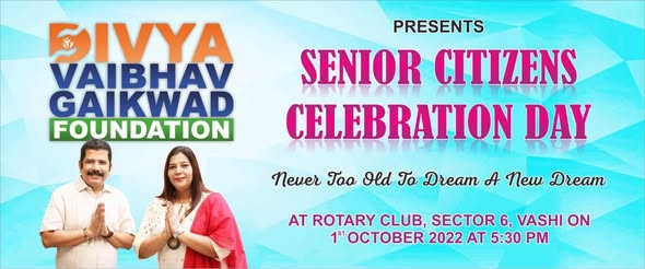 Requesting all the senior citizens of my ward to attend this program at 5:30 pm, Rotary Club, Sector 6, Vashi on 01 October 2022.