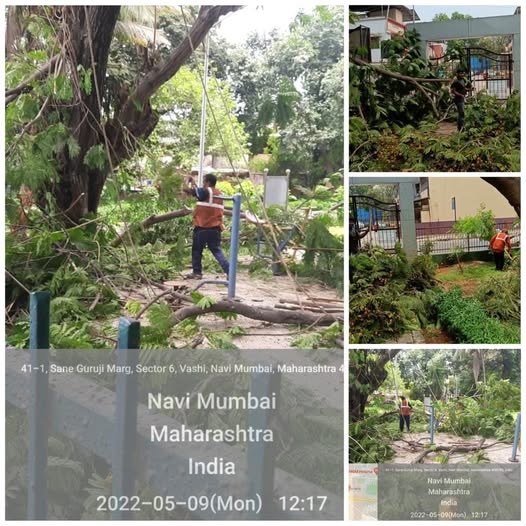 As per our request pre Monsoon Tree Trimming work has been started by NMMC in the Gardens of our Ward starting from Dyankalash Garden and will eventually cover all the gardens.